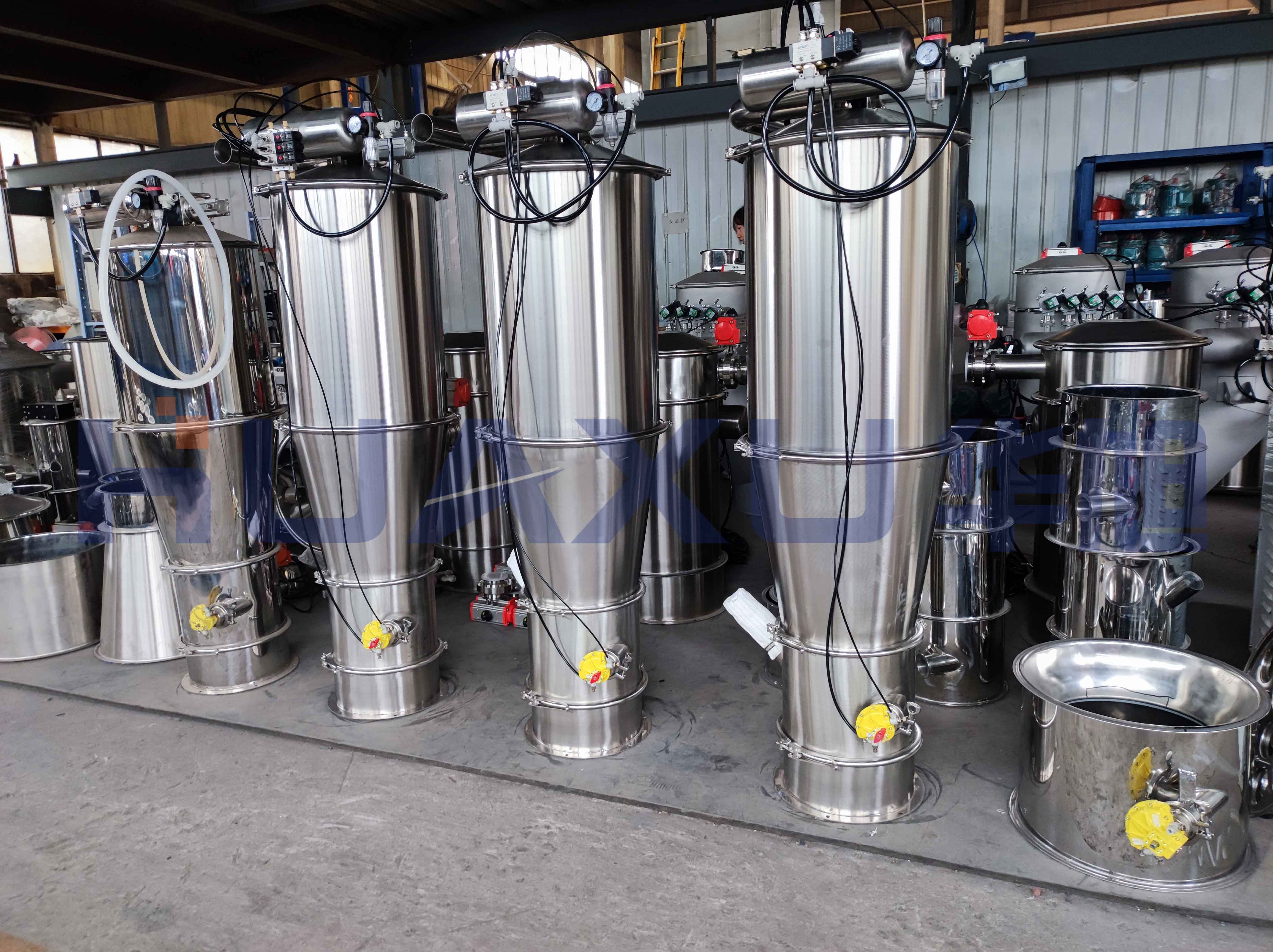 华旭粉体气力输送系统即真空输送设备,它是采用全密闭输送设备系统完成对散装物料(粉体,颗粒)的运输,这就完全杜绝了由于物料泄露造成的对环境的污染和对操作人员身体的伤害,以及周围环境对于物料的污染。是近年来粉体气力输送系统的发展方向。真空上料机的负压源有多种形式,例如:真空发生器、真空泵、罗茨风机等。真空发生器的优点是体积小、重量轻、便于安装,可应用在洁净厂房内它采用射流技术,使真空发生器在压缩空气的作用下产生高真空实现对物料的输送设备,不需要机械式真空泵,没有任何润滑元件,也几乎没有运动部件,完全符合GMP要求。气动真空输送设备系统主要应用于制药,食品行业的粉状、颗粒状等固体物料的输送设备和上料。可与混合机、制粒机、压片机、包衣机、胶囊充填机,包装机等主要工艺设备配套使用;随着其在中国的不断推广应用,必将会对我国在该领域优化生产工艺流程,有效地减少了交叉污染与粉尘,对提高药品生产品质起到积极作用。